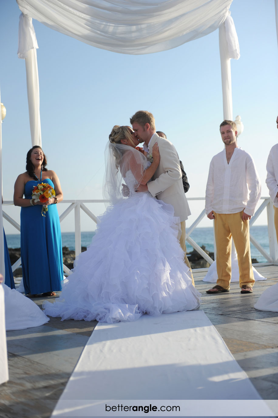 Overlooking the sea, under the draped gazebo, Amanda and Joshua said “I do”. Everyone was always smiling, especially the bride and groom. Her super high heels did not stop her from climbing on the iron shore during the sunset for some couple portraits. After that, everyone had fun, enjoying a great dinner at Grand Old House. Amanda and Joshua went to stay a few days at the Ritz-Carlton, where they phoned us from after we delivered their photos…. thrilled with everything. They were still smiling when we spoke!