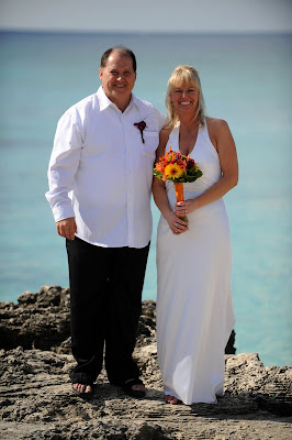 Only hours ago, Barbara and Terry got married on the beach in Grand Cayman.  They brought their sunglasses so they could get some photos with them on.  And it was a good thing – WOW was it sunny today!